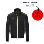 Wind and water-repellent blouson. Durable, high value nylon with 2 side insertion pockets with flaps, knitted cuff on sleeves, collar and hem, upper arm pocket with zipper and penholder.