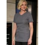 Waterproof and bleach resistant. Round neck. Double centre pocket. Flattering feminine fit measuring 86cm in length.